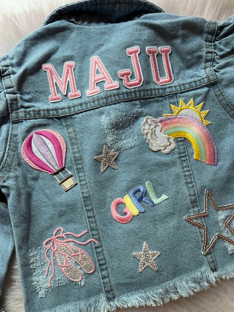 Nossa jaqueta personalizada é um sucesso de muitos anos aqui na nossa loja . Elaborada e desenvolvida com todo amor e carinho para deixar a sua filha muito estilosa e linda . Temos várias opções de bordados para agradar todos os gostos das nossas pequenas. A jaqueta é uma peça chave para usar todo o ano , pois deixa o look lindo e proteje as nossas filhas da friagem. Aproveitem e veja o look com os tutus que fica lindo para aniversários e festas !