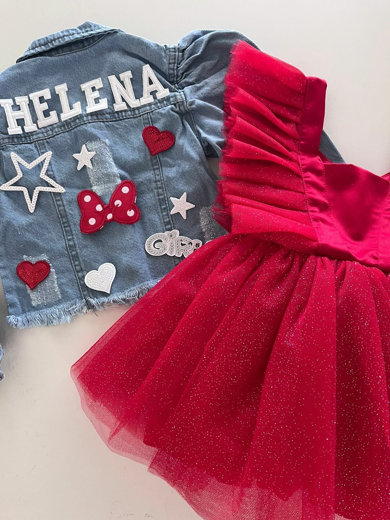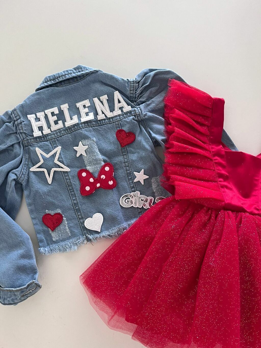 Nossa jaqueta personalizada é um sucesso de muitos anos aqui na nossa loja . Elaborada e desenvolvida com todo amor e carinho para deixar a sua filha muito estilosa e linda . Temos várias opções de bordados para agradar todos os gostos das nossas pequenas. A jaqueta é uma peça chave para usar todo o ano , pois deixa o look lindo e proteje as nossas filhas da friagem. Aproveitem e veja o look com os tutus que fica lindo para aniversários e festas !